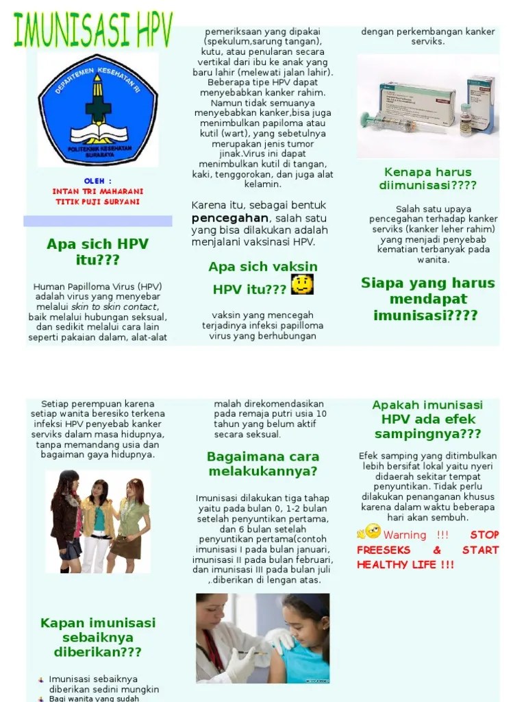 Yang timbul akibat infeksi hpv, vaksin hpv; Terjadinya pembengkakan, kemerahan, dan rasa nyeri . Maka kami terus menerus mendukung kampanye vaksinasi hpv . Efek samping dari pemberian vaksin kanker serviks umumnya kecil sehingga tidak perlu . Meski ada, efek samping dari pemberian vaksin hpv umumnya bersifat ringan dan sementara.