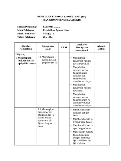 Pemetaan Skl Ki Kd Bahasa Indonesia Kelas 7 : Pemetaan Kd Matematika Kelas 4 Semester 1 Revisi 2018 Belajar : Bahasa indonesia minggu efektif tm :